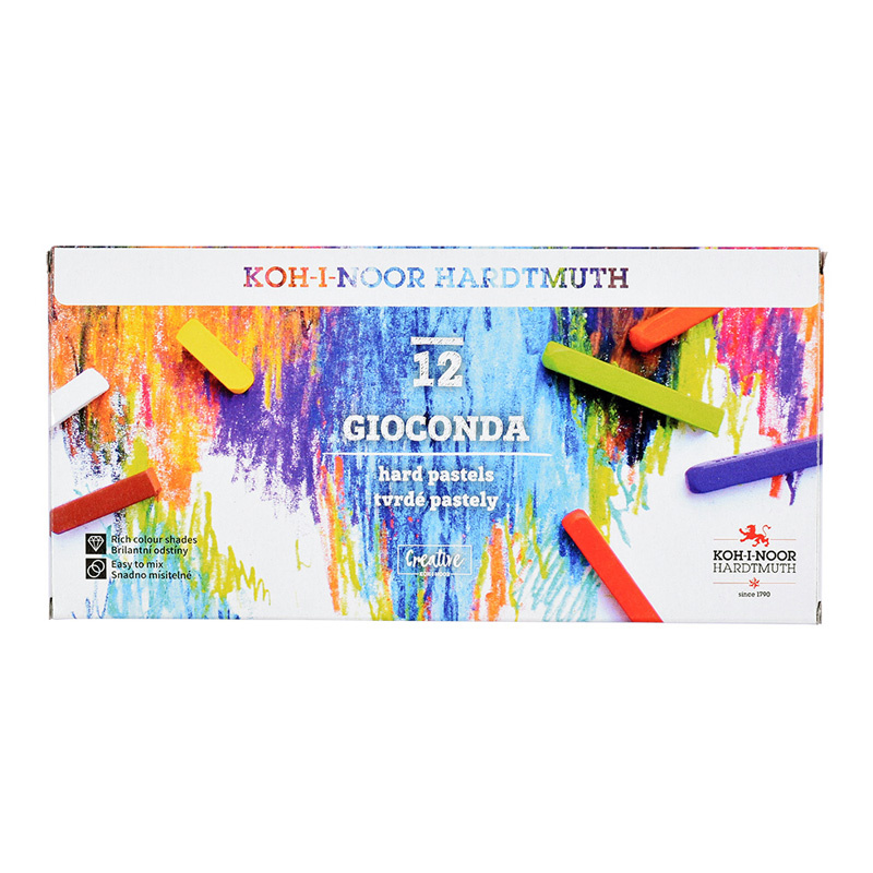Pastele twarde Gioconda wykonane są z najwyższej jakości surowców. Zawierają dużą ilość równomiernie rozprowadzonego pigmentu, co zapewnia intensywność i trwałość barw. Doskonale nadają się do szkicowania i mocnego rysunku, a także wypełniania dużych obszarów. Rysunki wykonane tymi pastelami są bardziej trwałe niż wykonane pastelami suchymi. Pastele twarde idealnie przylegają do podłoża i nie rozcierają się.