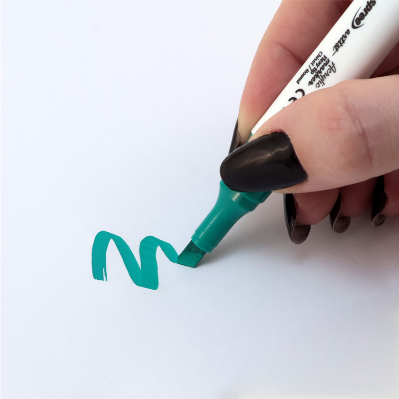 Markery dwustronne wyposażone są w dwie końcówki, które zapewniają pełną swobodę tworzenia – od precyzyjnych detali po efektowne wypełnienia. Końcówka ścięta doskonale sprawdza się przy kolorowaniu i cieniowaniu, natomiast cienka końcówka umożliwia dokładne rysowanie, konturowanie oraz pisanie. W zestawie znajduje się również czarny marker konturowy, wyposażony w klasyczną okrągłą końcówkę oraz bardzo cienką końcówkę do najdrobniejszych detali. Markery wyróżniają się szybkoschnącym tuszem, który minimalizuje ryzyko rozmazywania i zapewnia komfort pracy. Intensywne, nasycone kolory sprawiają, że każda praca nabiera wyrazistości. Doskonale sprawdzają się na różnych powierzchniach, takich jak papier, ceramika, szkło, plastik, tkaniny, metal, drewno czy kamień. Całość zapakowana jest w praktyczne i estetyczne pudełko, ułatwiające przechowywanie oraz transport.