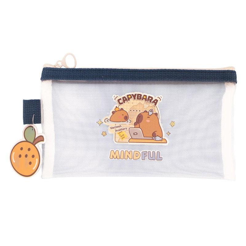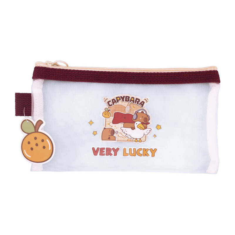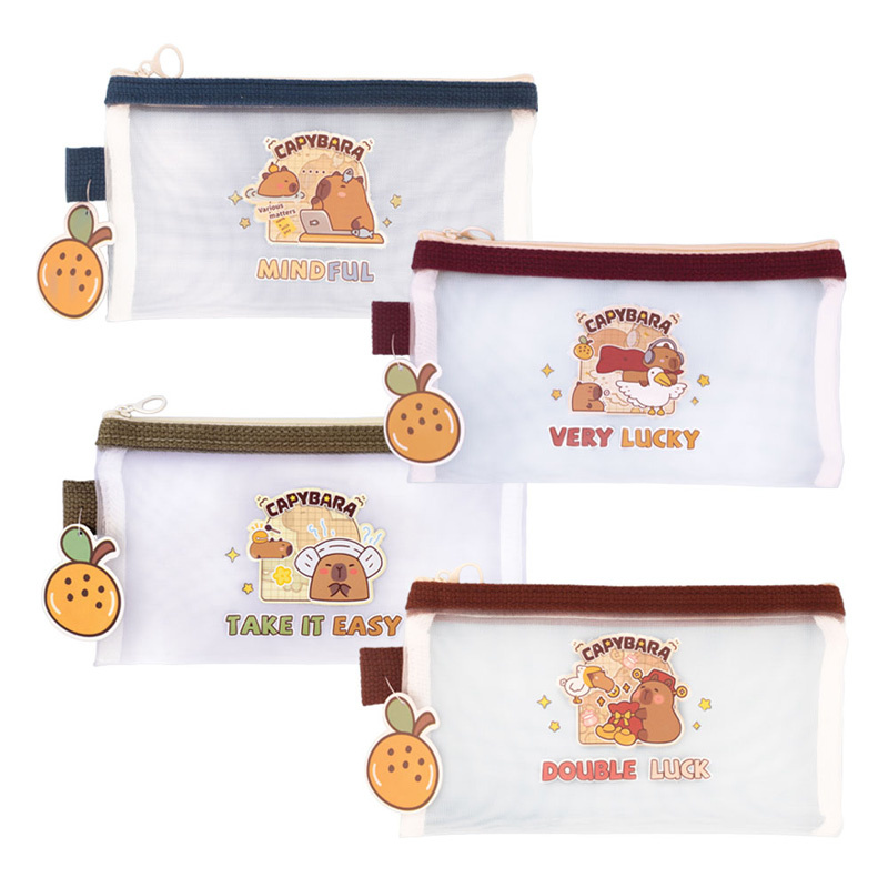 Praktyczny piórnik wykonany z lekkiej, przezroczystej siatki, ozdobiony modnym motywem kapibary. Idealnie sprawdzi się nie tylko jako piórnik szkolny, ale również jako poręczna saszetka na drobiazgi lub kosmetyczka na ulubione produkty. Dzięki transparentnemu materiałowi z łatwością można znaleźć wszystko, co jest potrzebne. Produkt dostępny jest w czterech atrakcyjnych wzorach.
