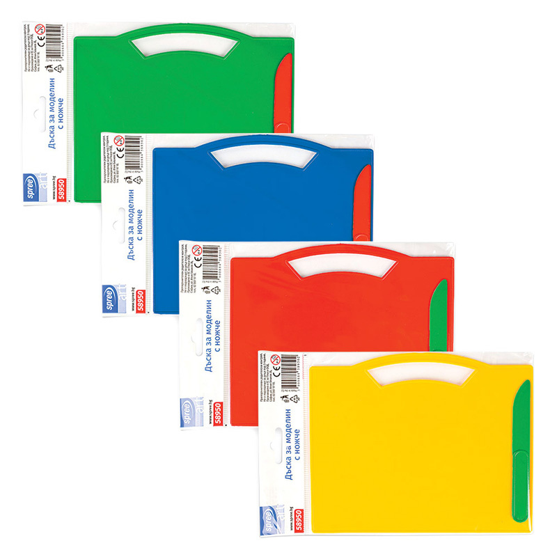 Zestaw do modelowania składający się z deski oraz nożyka, wykonanych z trwałego i bezpiecznego tworzywa. Zapewnia wygodę użytkowania i ochronę powierzchni stołu lub biurka przed zabrudzeniami podczas pracy z plasteliną, modeliną lub glinką. Dołączony nożyk został zaprojektowany z myślą o cięciu miękkich, syntetycznych mas – jest bezpieczny w użyciu i nie stanowi zagrożenia dla dziecka. Zestaw doskonale sprawdzi się zarówno podczas zabawy, jak i zajęć plastycznych. Produkt dostępny w kilku kolorach: zielonym, niebieskim, żółtym i czerwonym. Wyprodukowany w UE. Przeznaczony dla dzieci powyżej 3 roku życia.