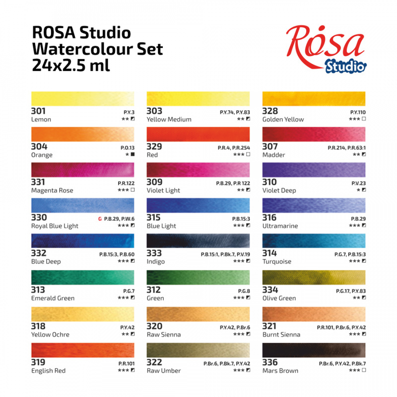 Akwarele Rosa Studio w zestawie plenerowym, w formie wygodnych kostek. Zestaw zawiera wszystkie niezbędne odcienie, które pomogą oddać najbardziej subtelne kolory natury. Wysokiej jakości drobno zmielone pigmenty zapewniają nasycenie, czystość i transparentność barw. Naturalne roślinne spoiwo w połączeniu z gumą arabską pozwala uzyskać doskonałą dyspersję kolorów na powierzchni. Większość farb w zestawie jest jednopigmentowa, co daje szerokie możliwości eksperymentowania z kolorami. Po wyschnięciu pozwalają uzyskać klasyczne matowe wykończenie.