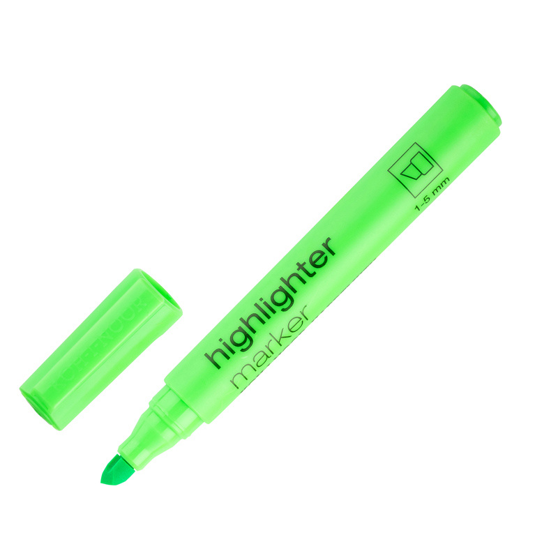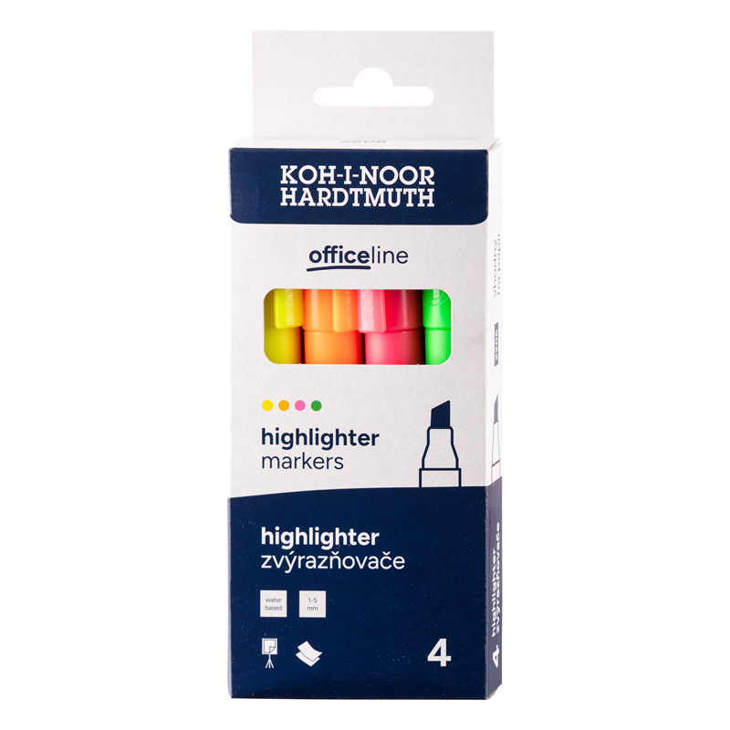 Markery zakreślające do tekstu z tuszem na bazie wody, który eliminuje nieprzyjemny zapach i zapewnia komfort użytkowania. Wyposażone w ściętą końcówkę, umożliwiają zarówno szybkie zakreślanie większych fragmentów tekstu, jak i precyzyjne prowadzenie cienkich linii. Przeznaczone do stosowania na papierze. Dostępne w neonowych kolorach: żółtym, zielonym, różowym, pomarańczowym, niebieskim oraz czerwonym.