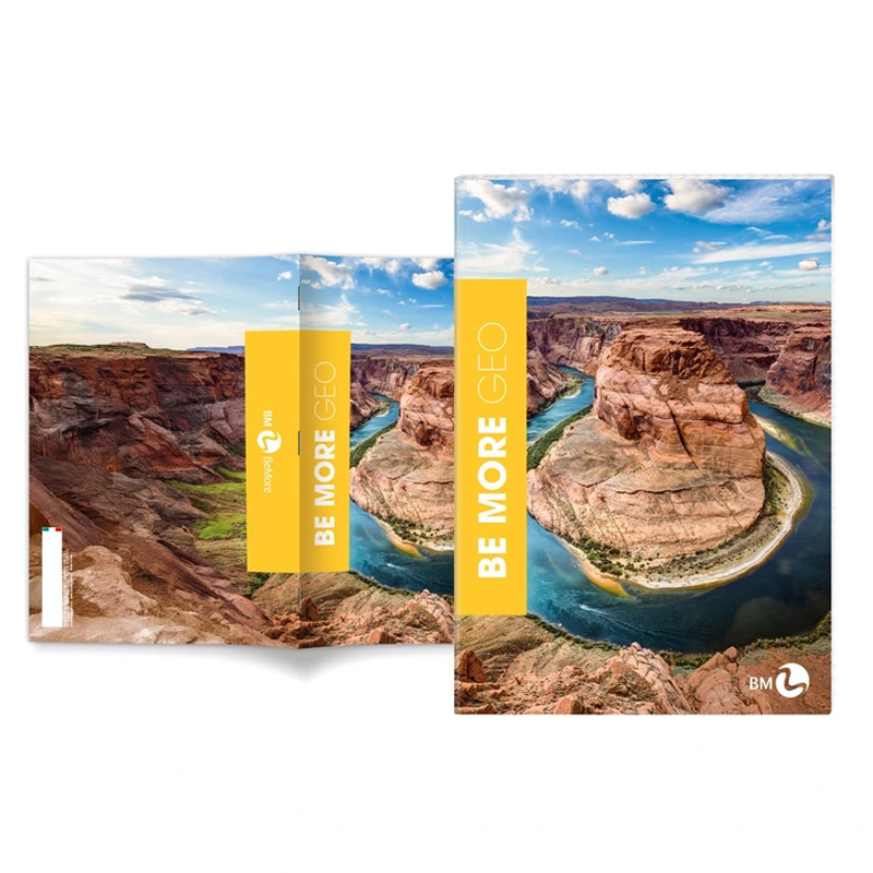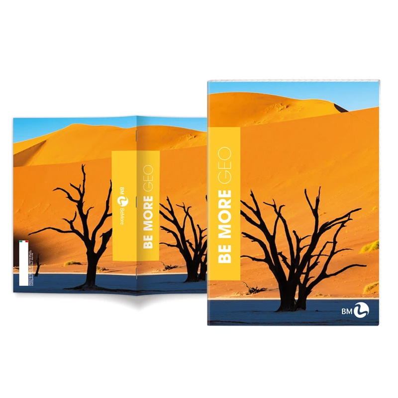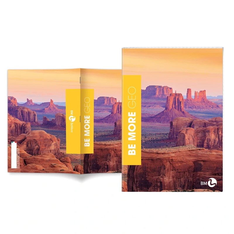 Kolekcja zeszytów Be More Geo odznacza się przepięknymi okładkami przedstawiającymi krajobrazy z różnych zakątków świata. Zdjęcia pokryte są wybiórczo lakierem UV, co uwydatnia detale i nadaje głębi obrazkom. Zeszyty posiadają kartki o wysokiej gramaturze 100 g z marginesami.