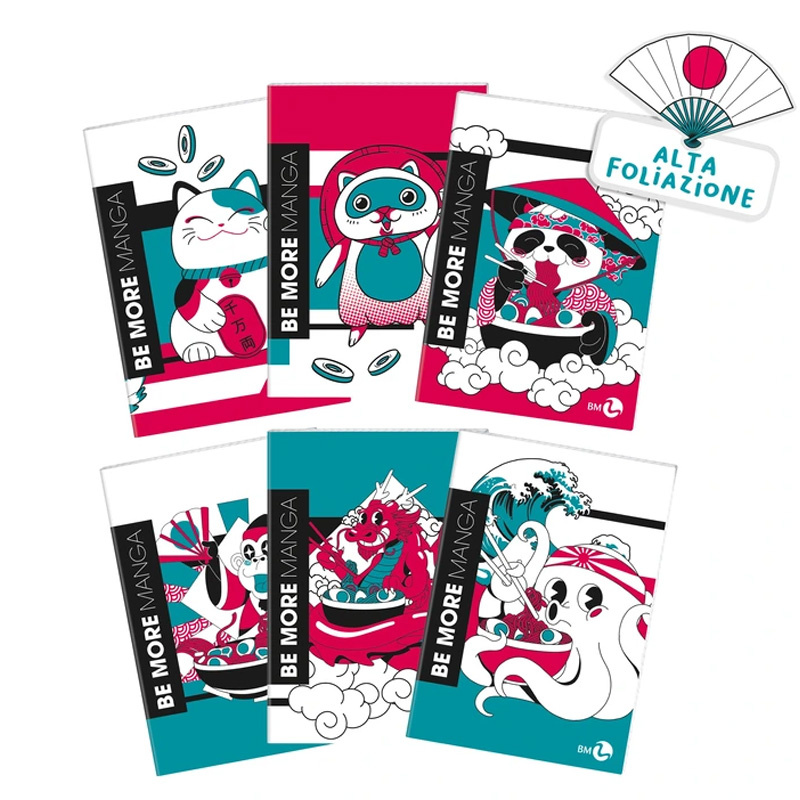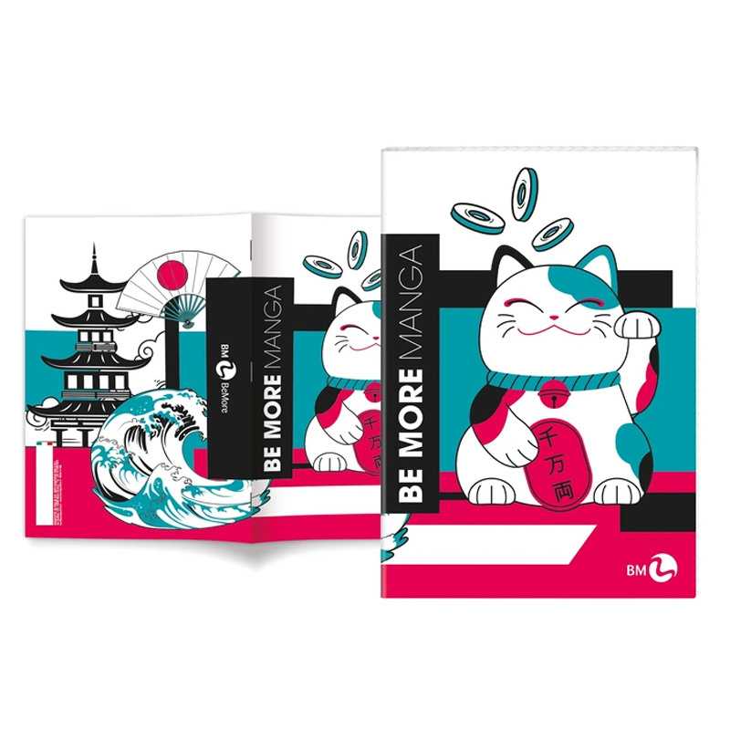Kolekcja zeszytów Be More Manga odznacza się okładkami z elementami kultury azjatyckiej w odważnych kolorach. To doskonała propozycja stworzona dla fanów mangi i anime. Zeszyty posiadają kartki o wysokiej gramaturze 100 g z marginesami.