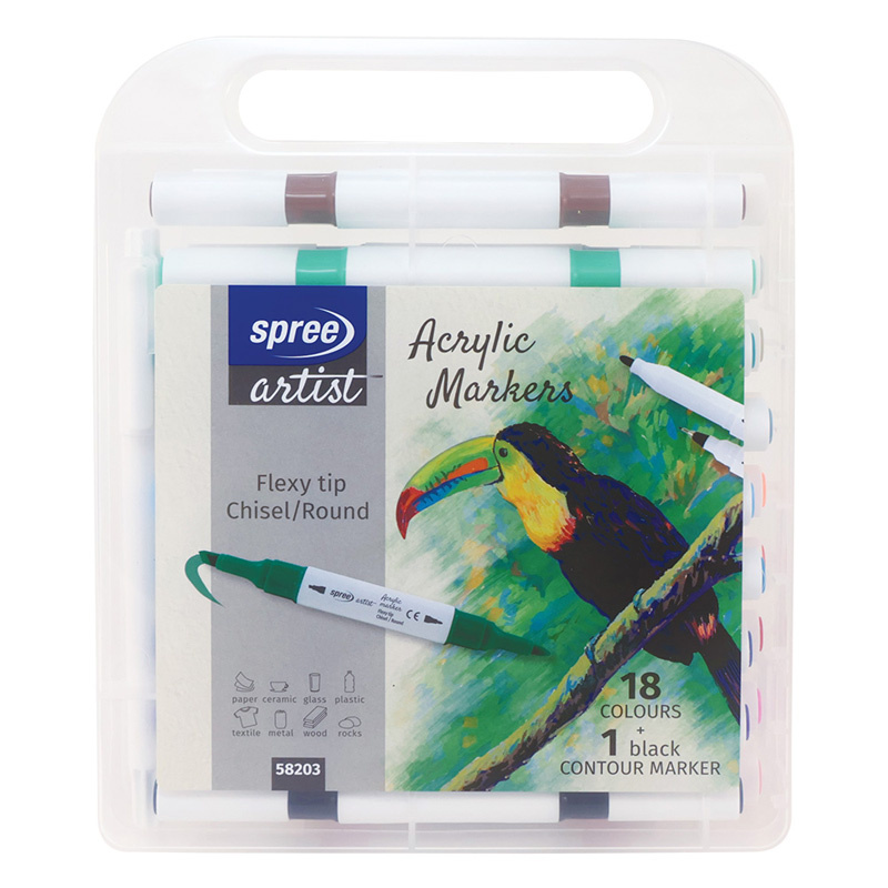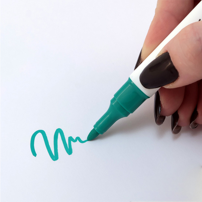 Markery dwustronne wyposażone są w dwie końcówki, które zapewniają pełną swobodę tworzenia – od precyzyjnych detali po efektowne wypełnienia. Końcówka ścięta doskonale sprawdza się przy kolorowaniu i cieniowaniu, natomiast cienka końcówka umożliwia dokładne rysowanie, konturowanie oraz pisanie. W zestawie znajduje się również czarny marker konturowy, wyposażony w klasyczną okrągłą końcówkę oraz bardzo cienką końcówkę do najdrobniejszych detali. Markery wyróżniają się szybkoschnącym tuszem, który minimalizuje ryzyko rozmazywania i zapewnia komfort pracy. Intensywne, nasycone kolory sprawiają, że każda praca nabiera wyrazistości. Doskonale sprawdzają się na różnych powierzchniach, takich jak papier, ceramika, szkło, plastik, tkaniny, metal, drewno czy kamień. Całość zapakowana jest w praktyczne i estetyczne pudełko, ułatwiające przechowywanie oraz transport.