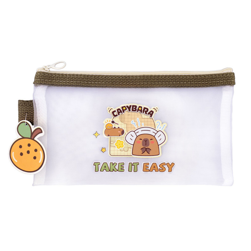 Praktyczny piórnik wykonany z lekkiej, przezroczystej siatki, ozdobiony modnym motywem kapibary. Idealnie sprawdzi się nie tylko jako piórnik szkolny, ale również jako poręczna saszetka na drobiazgi lub kosmetyczka na ulubione produkty. Dzięki transparentnemu materiałowi z łatwością można znaleźć wszystko, co jest potrzebne. Produkt dostępny jest w czterech atrakcyjnych wzorach.