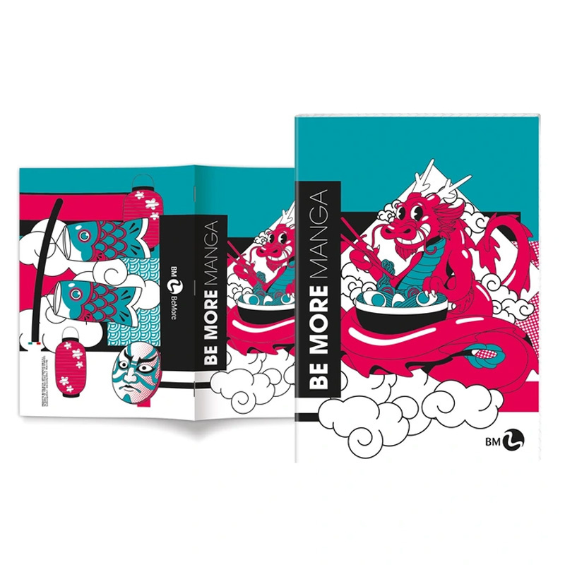 Kolekcja zeszytów Be More Manga odznacza się okładkami z elementami kultury azjatyckiej w odważnych kolorach. To doskonała propozycja stworzona dla fanów mangi i anime. Zeszyty posiadają kartki o wysokiej gramaturze 100 g z marginesami.